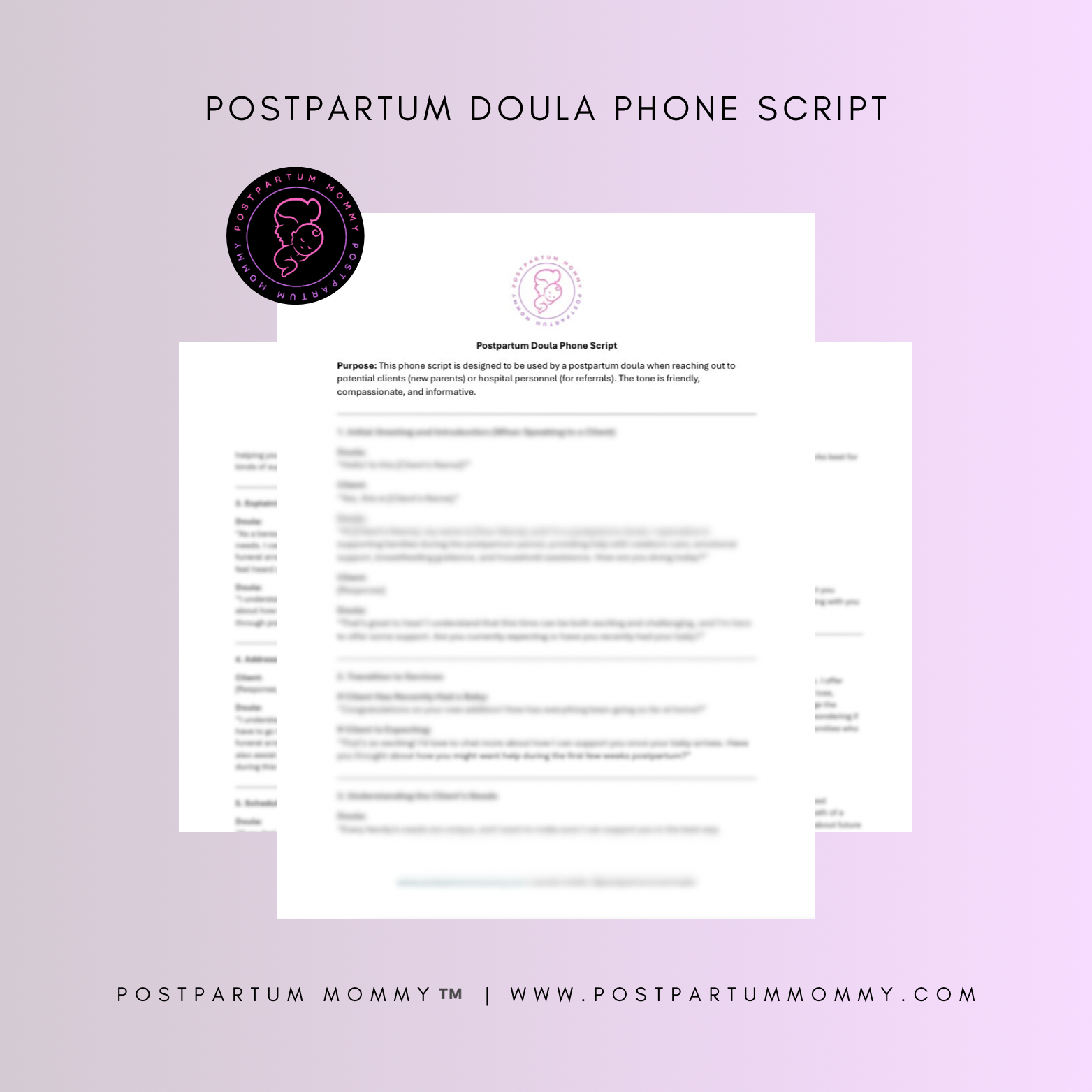 Our Postpartum Doula Phone Script is a comprehensive resource designed specifically for postpartum doulas seeking to connect with clients and build strong, supportive relationships during the crucial postpartum period. Whether you're a new doula just starting your practice or an experienced professional looking to streamline your client acquisition process, this script will help you effectively communicate the value of your services and secure more bookings.